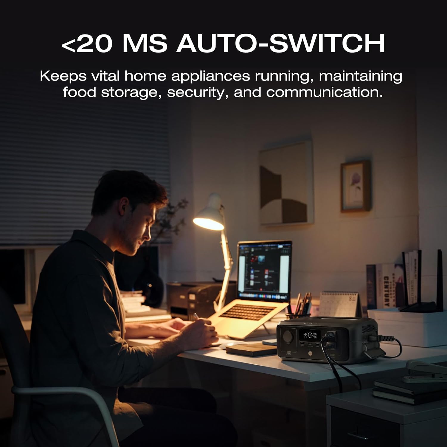 Con 300W de potencia continua y 245Wh de capacidad, es perfecta para alimentar hasta el 80% de tus dispositivos esenciales, desde computadoras hasta herramientas y electrodomésticos pequeños.